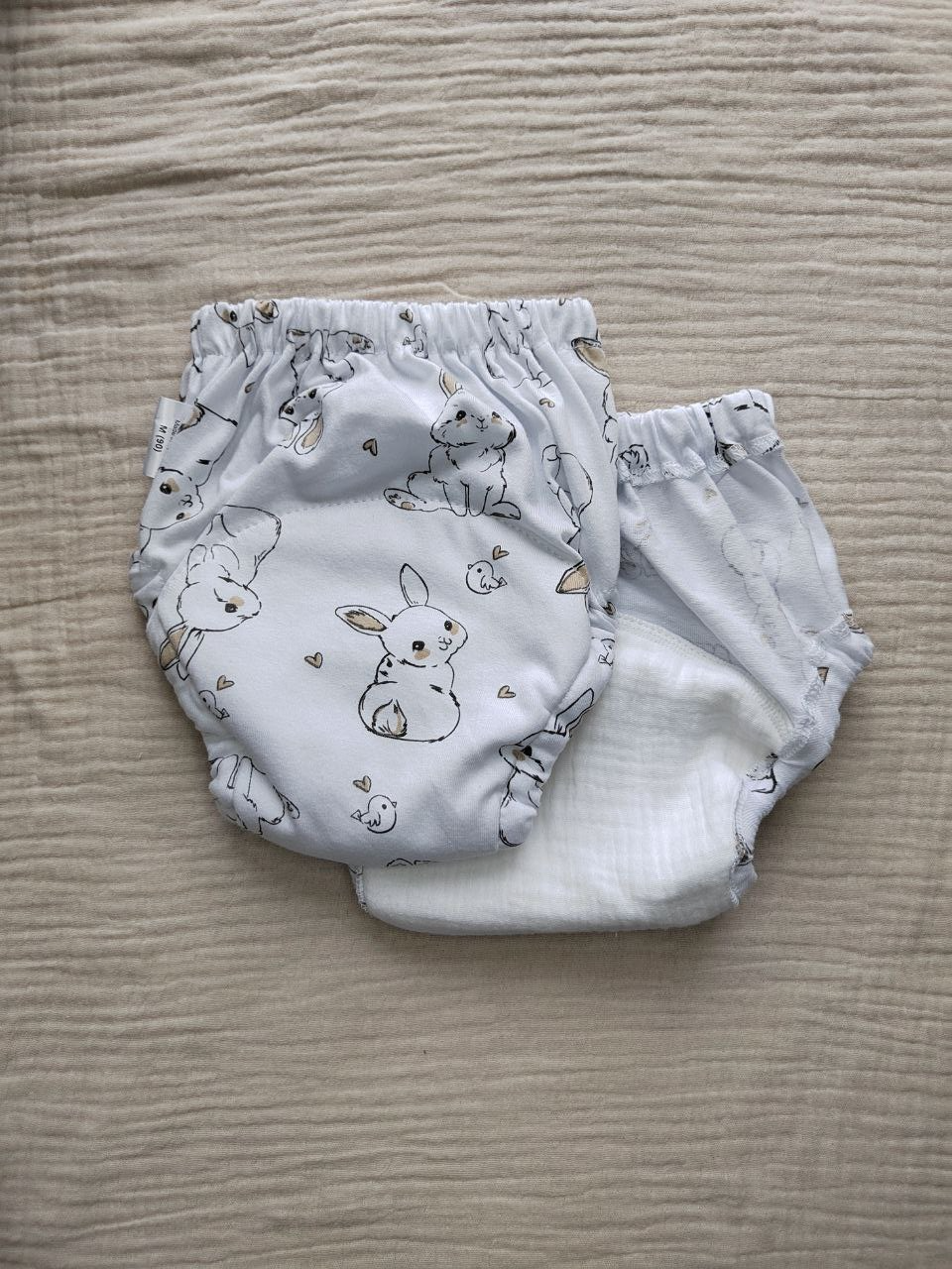 Почему нужно во время приучения к горшку использовать наши многоразовые трусики? Всё очень просто) Какая стандартная схема приучения к горшку? Когда мама снимает с ребенка одноразовый подгузник и оставляет его бегать без него, одевая ему либо обычные трусики, либо штанишки. Что мы получаем: это постоянные мокрые полы, лужи и бесконечная смена белья. Если обычно это начинается с энтузиазмом, то уже через какое-то время у мамы дёргается глаз, болит спина, стиральная машинка работает без конца и края, а все тряпки в доме все равно подозрительно пахнут. Чтобы избавить от этого мы придумали наши трусики. Для ребёнка, для его ощущений и комфорта, наши трусики точно такие же как обычные. |